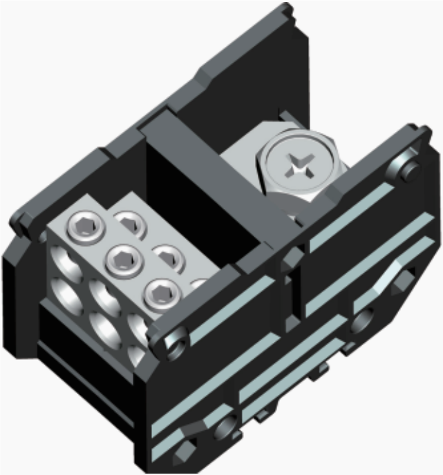 分线端子,额定电压:660V,最大工作电流:309A,接线方式:螺钉连接,连接量:7,厚度45×Nmm,高度63mm,颜色:黑色,安装方式:TH35-7.5、TH35-15、G32-15、G32-18