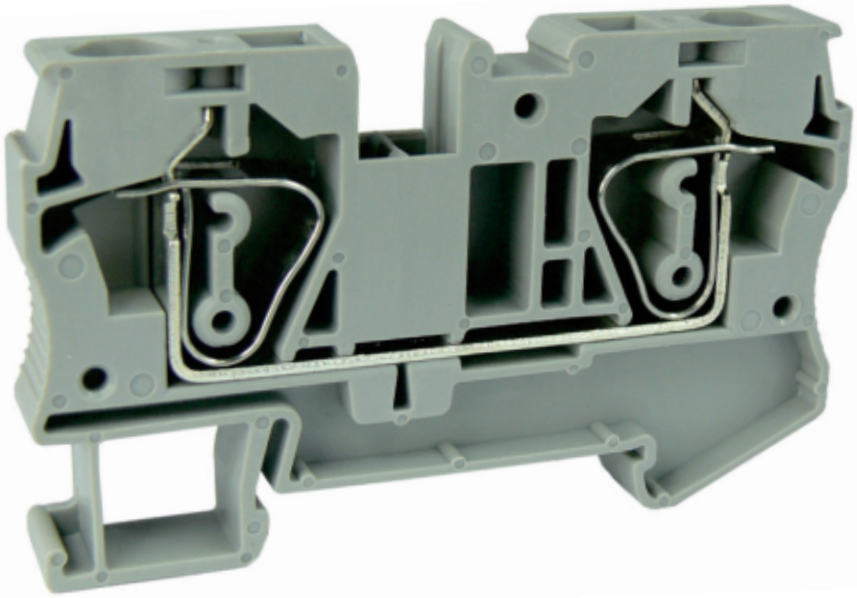 接线端子,额定电压:800V,最大工作电流:52A,接线方式:卡簧连接,连接量:2,压线范围:0.5mm²-10mm²,AWG:24-8,厚度8.2mm,高度42.2mm,颜色:灰色,安装方式:TH35-7.5、TH35-15
